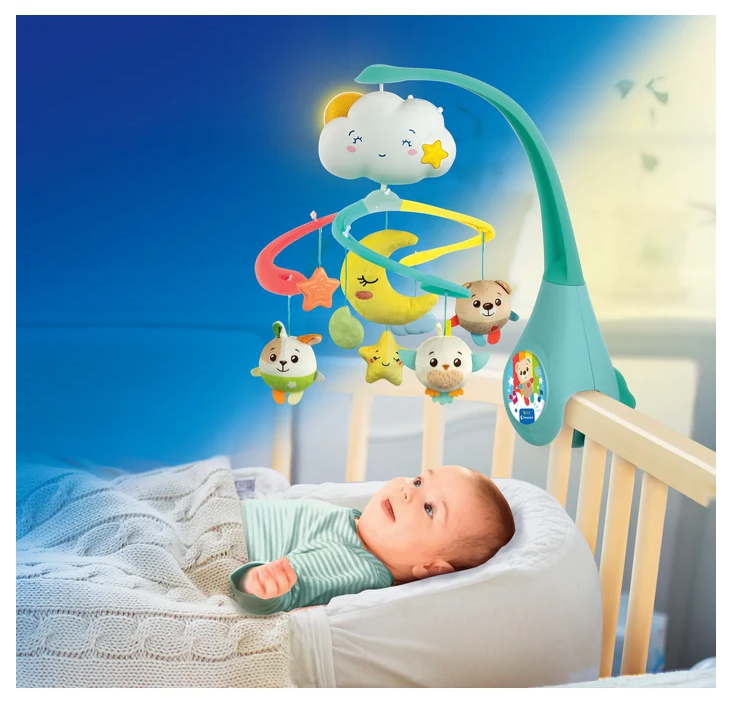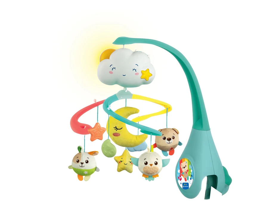 La dolce melodia del carillon del modulo elettronico, la possibilità di personalizzare la base dell’arco e i teneri personaggi creano un’atmosfera calma e serena, per accompagnare il piccolo nella nanna.