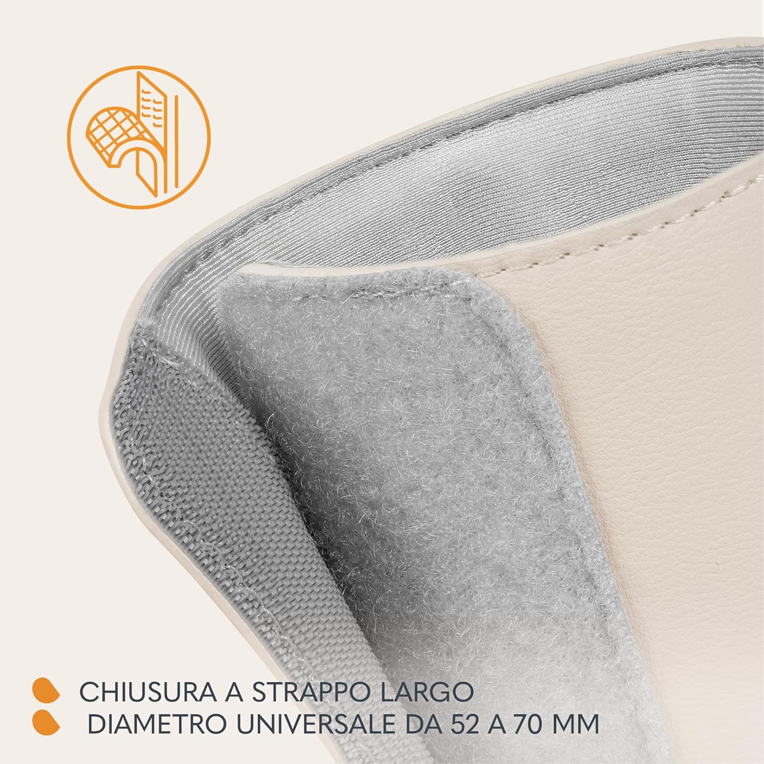 - PRATICITÀ: le dimensioni piccole dello scaldabiberon lo rendono facile da portare in borsa o nel cestino del passeggino. Il suo peso è di 140 g. La misura media universale di 52-70 mm e la chiusura in velcro permettono di adattarsi a qualsiasi bottiglia