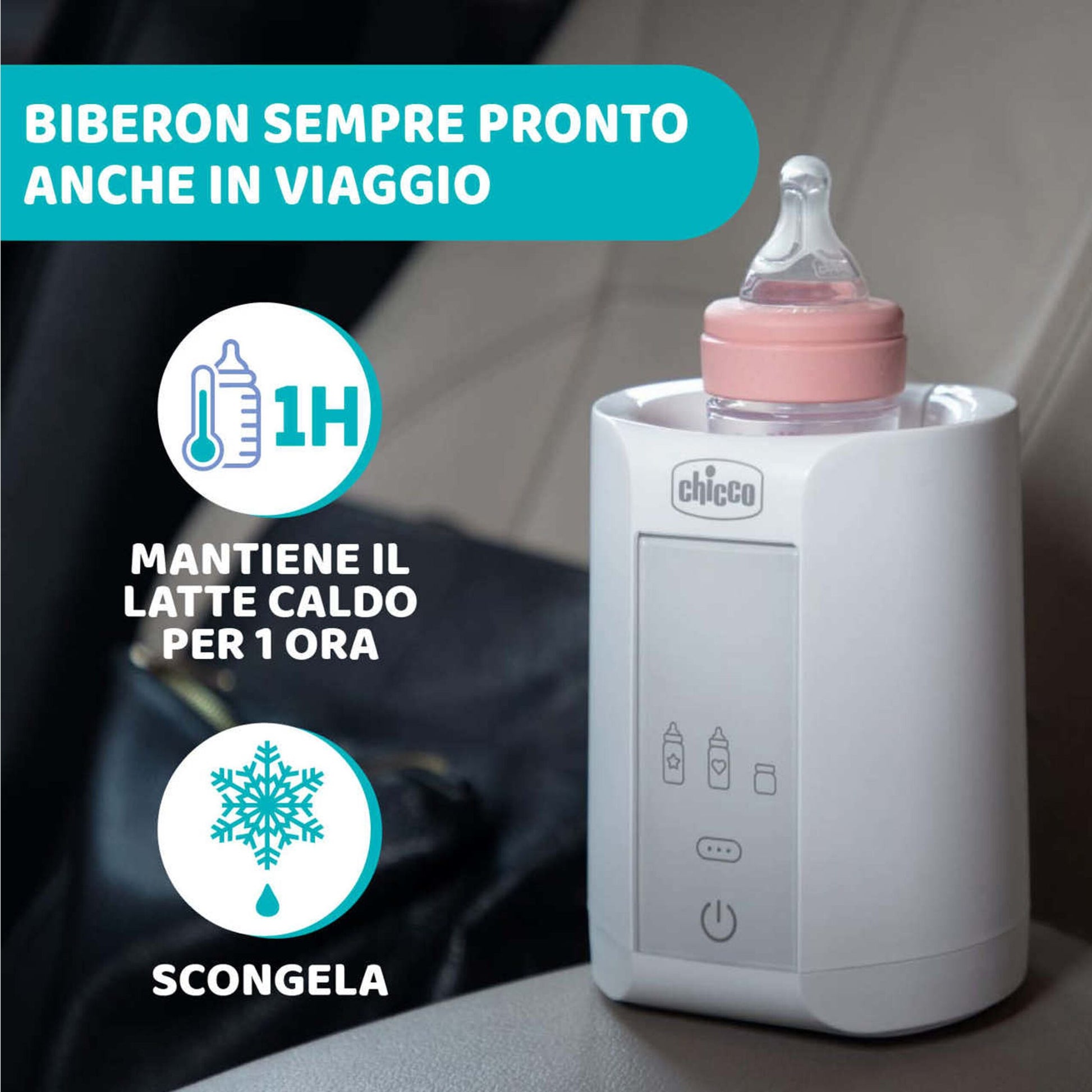 Lo Scaldabiberon Casa‑Viaggio Chicco è pensato per rendere i pasti del tuo bambino pratici e nutrienti, ovunque tu sia: a casa o in auto grazie allo spinotto 12 V incluso. Riscalda latte (artificiale o materno) e pappe in soli 4 minuti con tre programmi dedicati per garantire delicatezza e preservare i nutrienti.