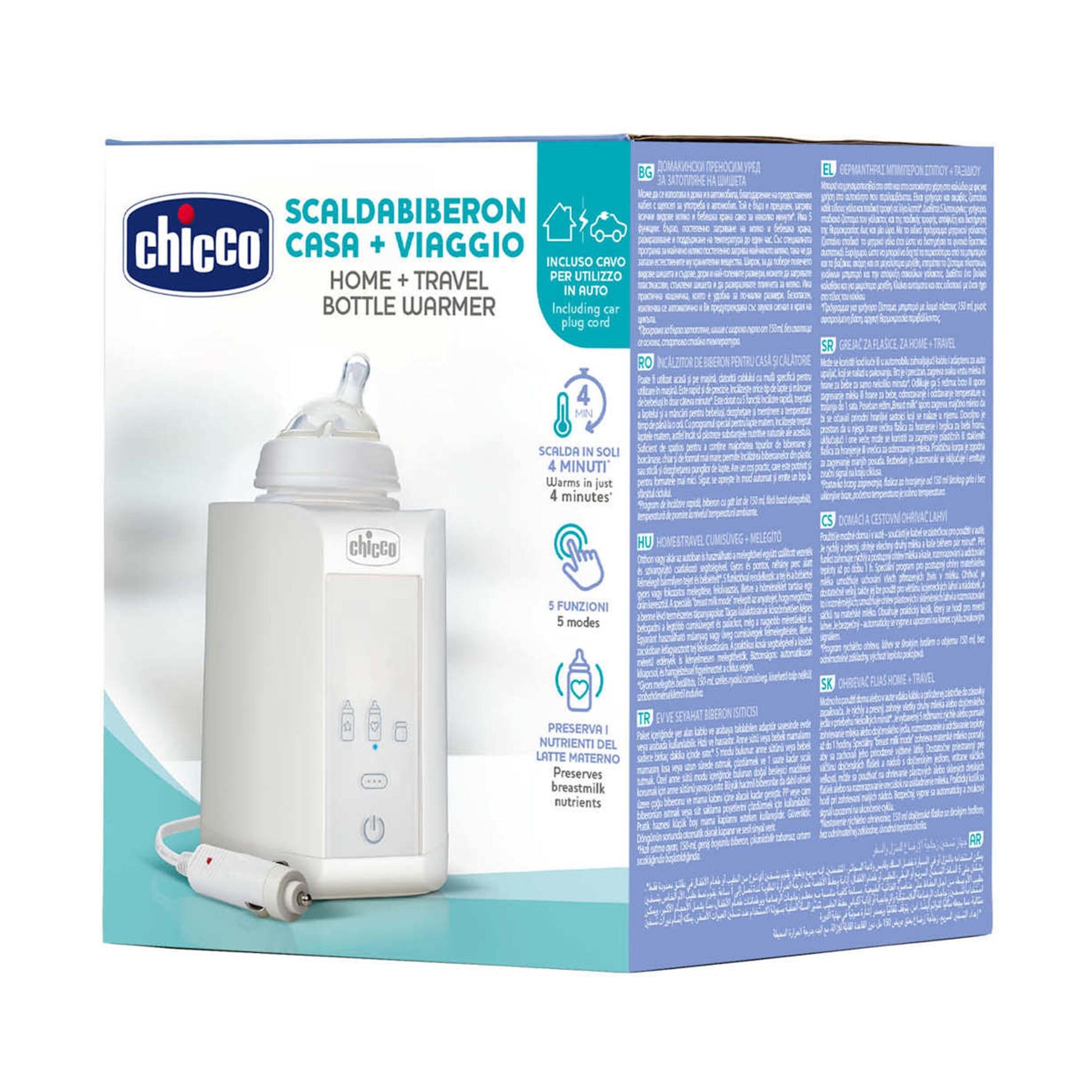 Con alimentazione a rete domestica e auto, è compatibile con la maggioranza di biberon e vasetti in commercio. Facile da usare, stabile e compatto, è il compagno ideale per genitori in movimento che desiderano alimenti sempre pronti e alla giusta temperatura.